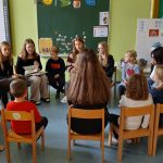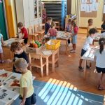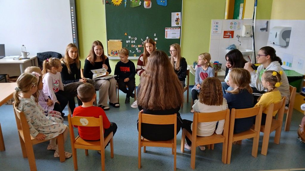 Rjava igralnica V rjavi ali čokoladni igralnici smo otroci stari od 5 – 6 let. Radi se igramo družabne igre, listamo knjige in revije, rišemo in ustvarjamo, pojemo in telovadimo. Ob tem sta z nami naši vzgojiteljici Petra in Tadeja.
